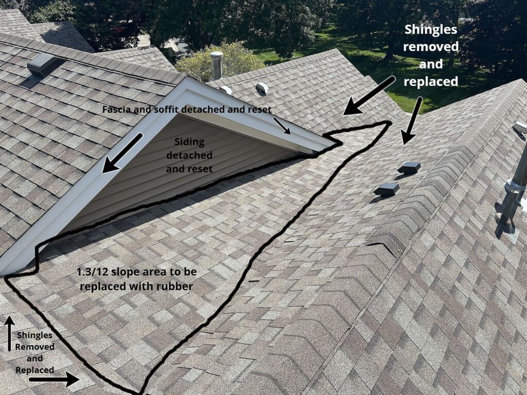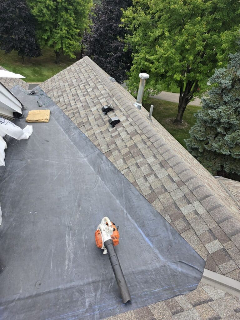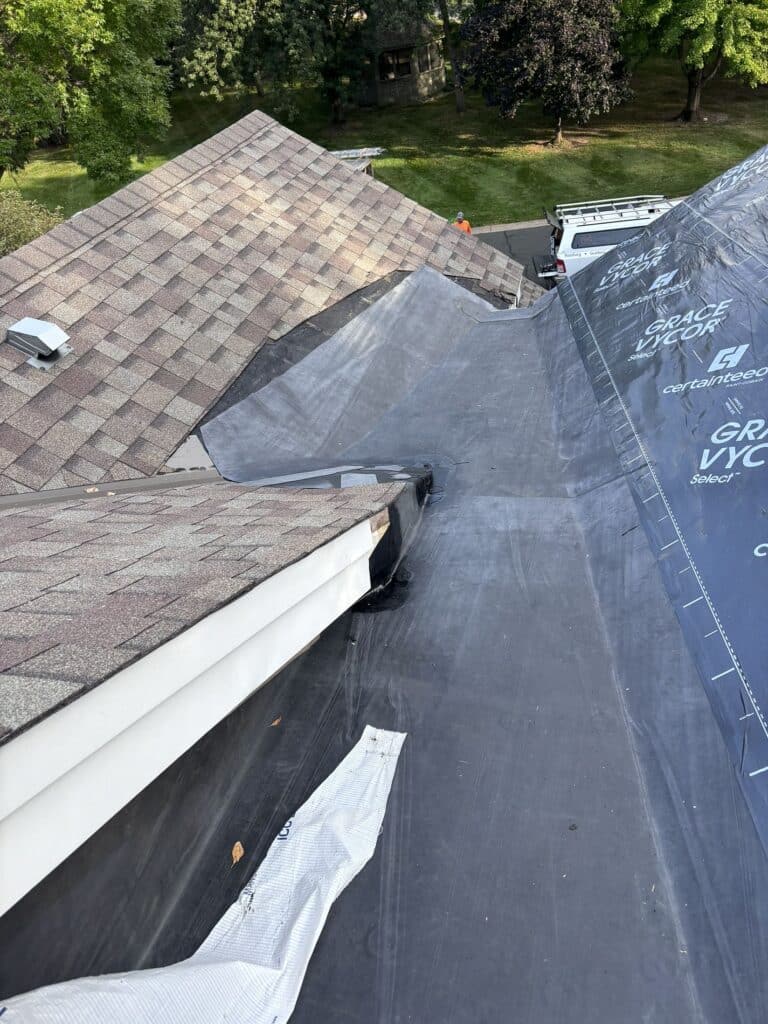In these low-slope areas, standard asphalt shingles simply aren’t up to the task. Instead, we installed a high-quality rubber membrane system, designed specifically for flat or near-flat roofs. This material provides a seamless, waterproof barrier that’s flexible enough to handle temperature fluctuations without cracking. It’s a go-to solution for Minnesota roofs, where ice dams and heavy precipitation are par for the course.