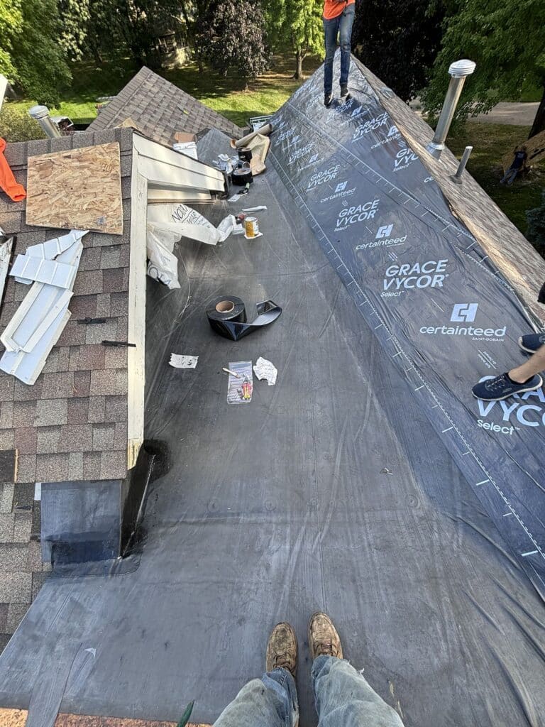 We believe in doing the job right the first time. Our crew started by carefully removing the shingles in the problematic valleys where the pitch was insufficient. This wasn’t a demolition job. We methodically stripped away the faulty materials to expose the underlying issues without causing further damage.