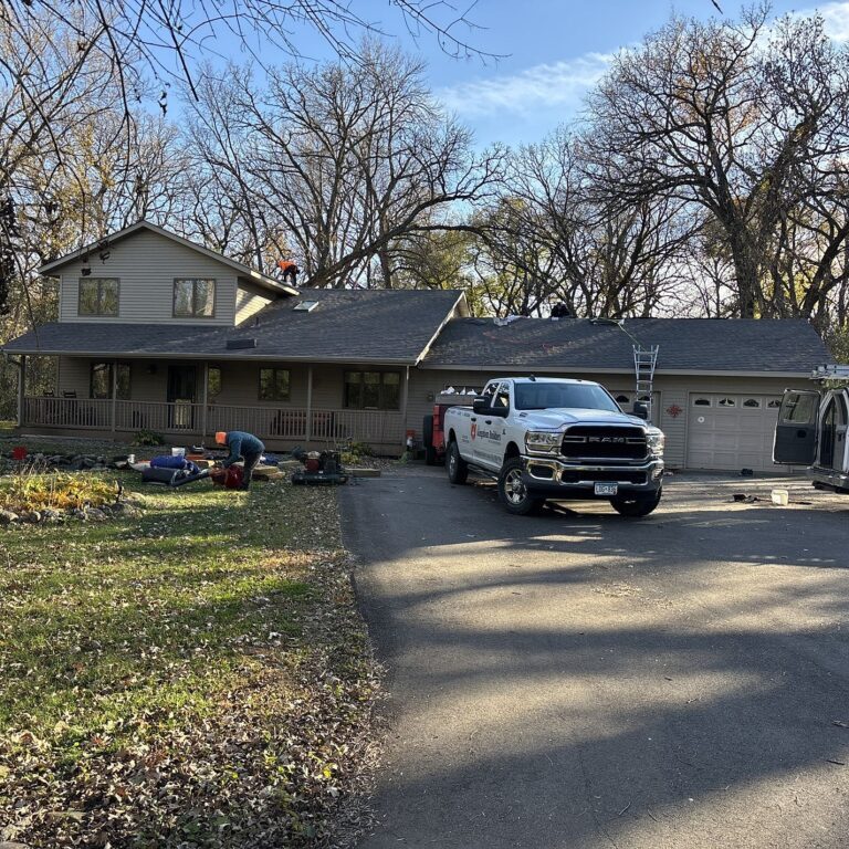 The Weathered Wood color blends beautifully with the home’s siding, fascia, and natural surroundings, creating a cohesive and timeless look. In addition to aesthetics, Atlas Pinnacle Pristine shingles feature Scotchgard™ Protector, which helps prevent algae staining and black streaks—an important benefit for roofs in humid and shaded environments common throughout McLeod County.